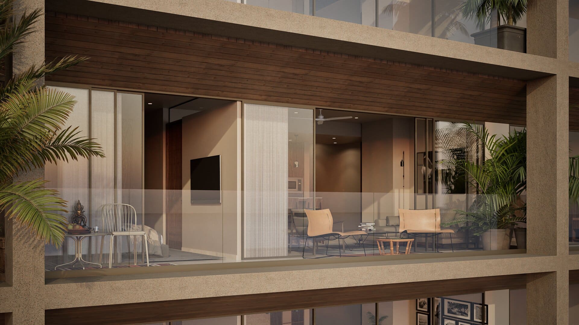Los primeros 7 niveles corresponden al Hotel Home 2 Suits de la prestigiosa marca Hilton y los niveles del 8 al 15 a los departamentos residenciales de Baalá con un total de 69 departamentos de 1 y 2 recámaras con vistas hacia la ciudad, la Laguna Nichupté y la Zona Hotelera.