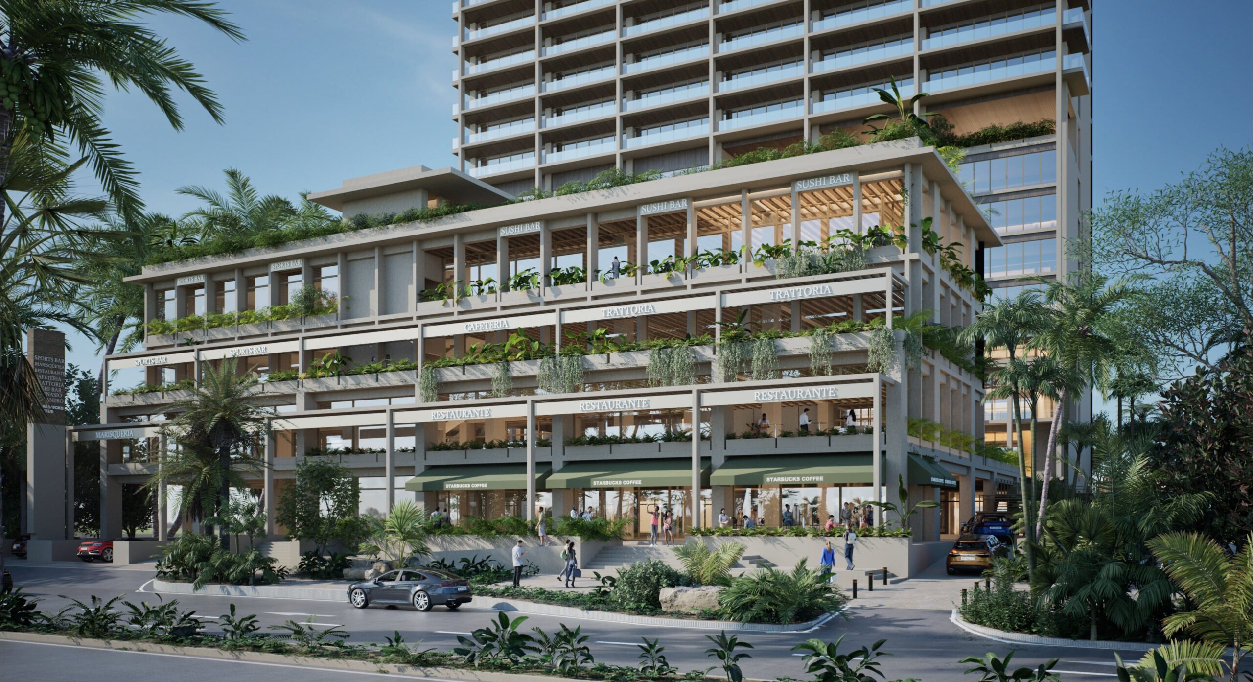Desarrollo inmobiliario ubicado sobre una de las avenidas más importantes de Cancún, este proyecto integra condominios residenciales, plaza comercial y un hotel operado por Hilton, que en conjunto conforman un espacio moderno orientado a la funcionalidad y al aprovechamiento de un entorno urbano que conecta rápidamente a puntos de interés de la ciudad.